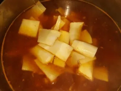- ใส่หน่อไม้ดอง ต้มสักพักจนหน่อไม้นิ่ม